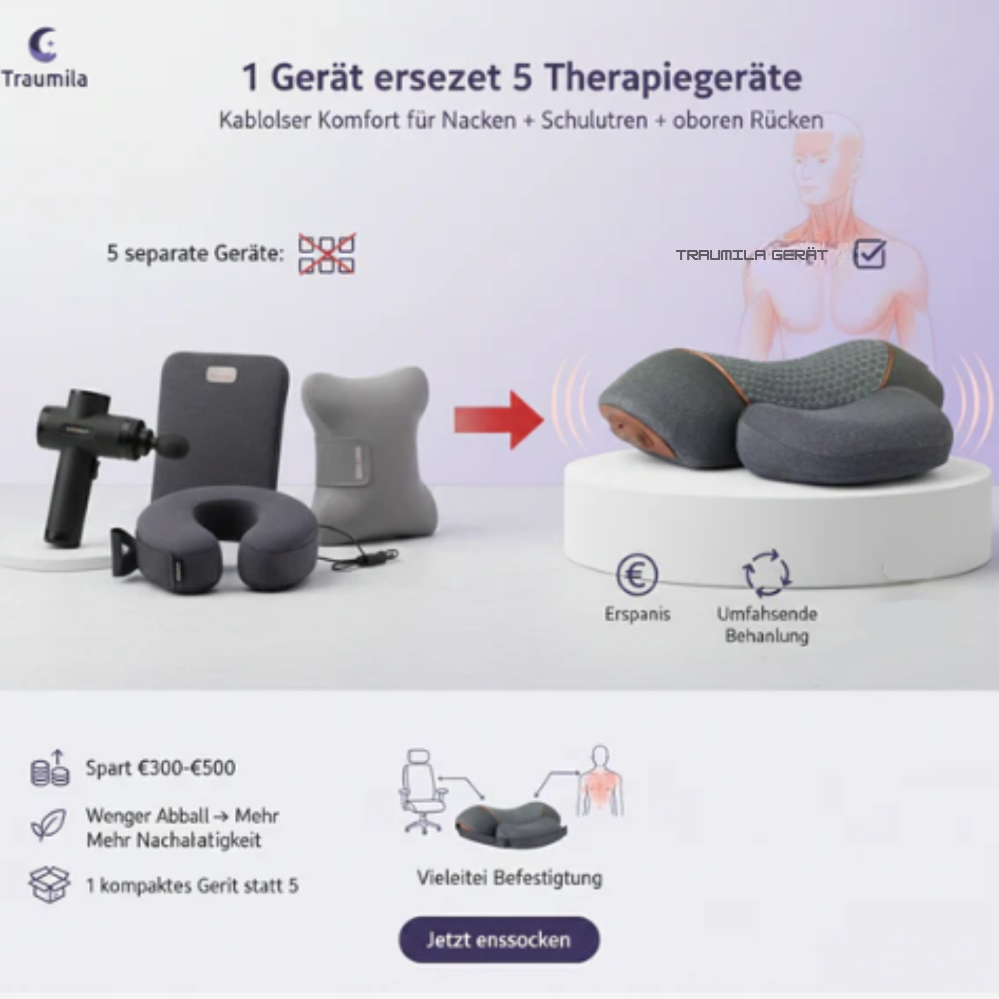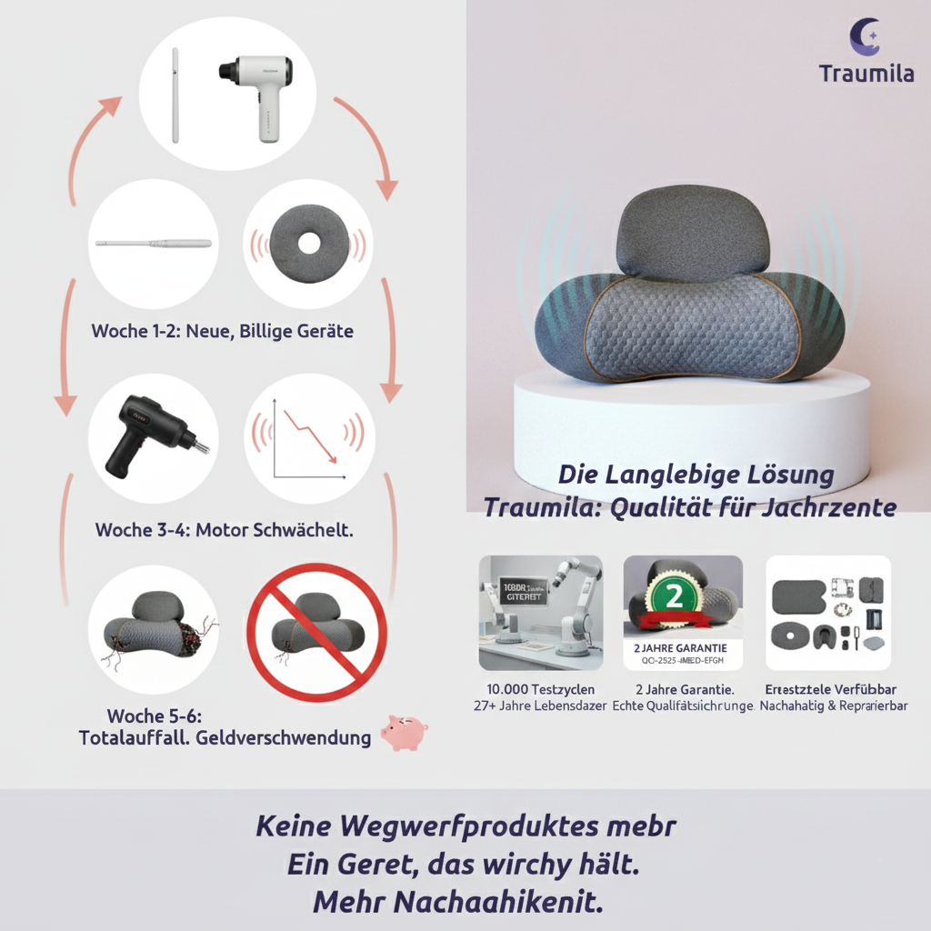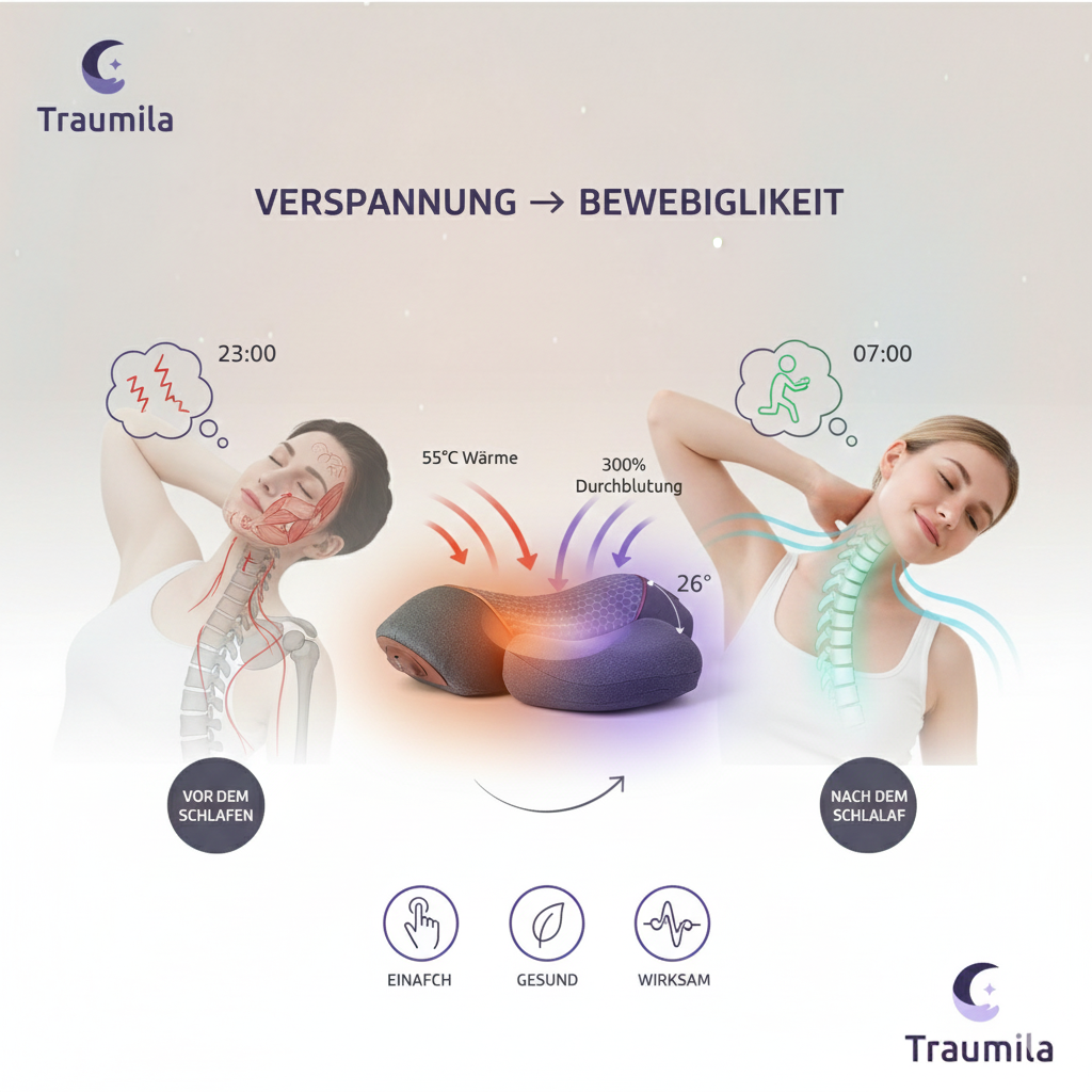 und stattdessen zum Therapiekissen gewechselt sind, das die Nackenmuskulatur in 30–90 Tagen neu kalibriert.